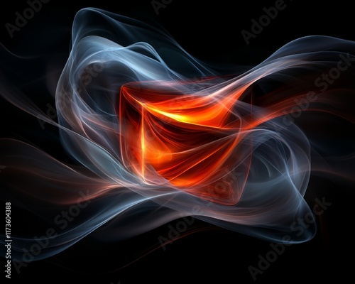 Obraz premium Abstract Fiery Cube in Swirling Smoke Digital Art Energy Technology Background