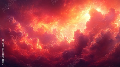 © Muamanah, Fototapeta premium Abstract fiery sky with clouds and stars