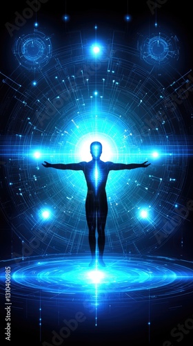 Fototapeta premium Abstract figure illuminated, digital art, futuristic background, spiritual...