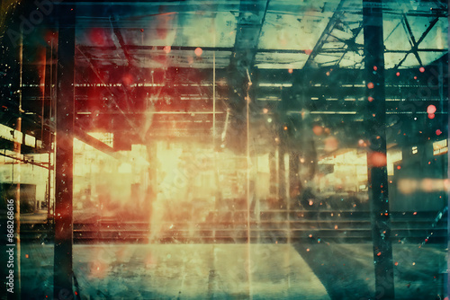 © Five Million Stock, Obraz premium Abstract film texture background with heavy grain, dust and light leak. Vintage distressed old photo light leaks, film grain, dust and scratches texture overlay. grunge