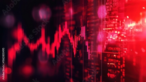 Fototapeta premium Abstract financial data, stock market chart, red bokeh background, business...