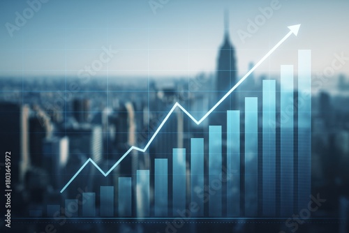 Fototapeta premium Abstract financial growth graph overlaying a city skyline, symbolizing...