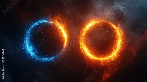 Obraz premium Abstract fire and ice rings, cosmic backdrop