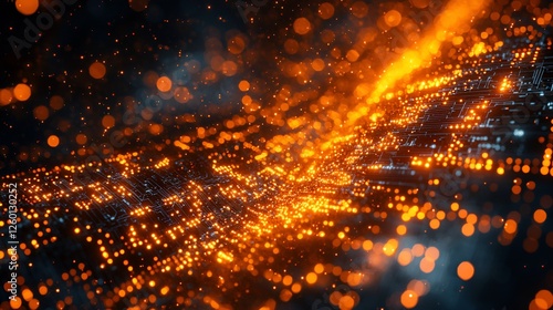 © pete99, Obraz premium Abstract fire city digital art background, graphic design element