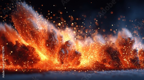 © T.Raw Visuals, Naklejka premium Abstract Fire Explosion with Sparks and Smoke on Dark Background