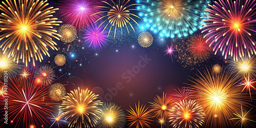 © Amjad, Fototapeta premium Abstract Firework Background with Free Space