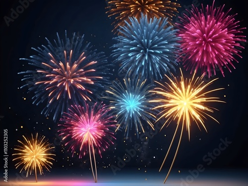 © Rafli, Fototapeta premium abstract fireworks background and space for text. Fireworks at Night