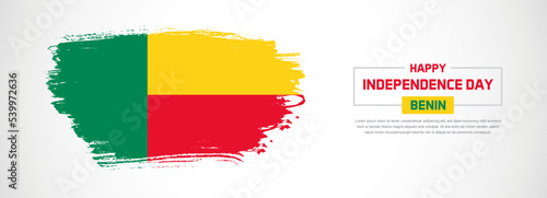 © Akshay, Obraz premium Abstract flag of Benin on hand drawn brush strokes. Happy Independence Day with grunge style vector background