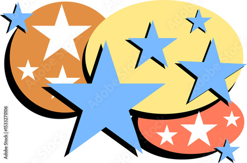 Obraz premium Abstract flat design is showing three overlapping ovals and blue stars on transparent background