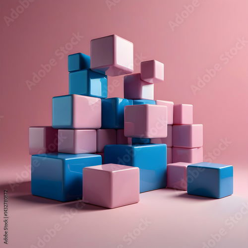 © I am images creator, Fototapeta premium Abstract Floating Blue and Pink Cubes on Gradient Background