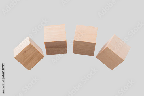 © voyata, Obraz premium Abstract floating wooden cube on white background
