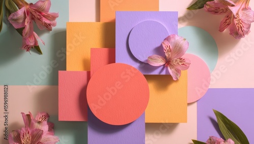Obraz premium Abstract floral arrangement on geometric shapes