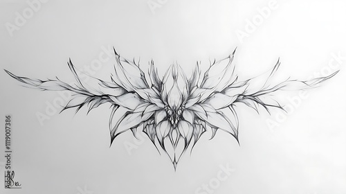 Obraz premium Abstract Floral Design Ink Drawing Symmetrical Pattern