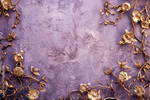 © art, Obraz premium Abstract floral frame subtle gold splash copy space