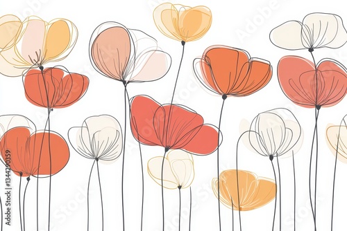 © AHNH2, Obraz premium Abstract Floral Illustration with Soft Lines and Bright Colors