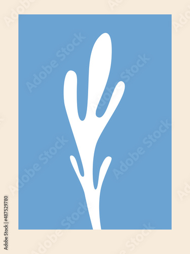 Obraz premium Abstract floral motif on a blue background, minimalist painting