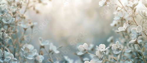 © Adi, Fototapeta premium Abstract floral nature background with delicate white plant and flower leaves border