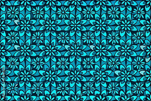 © Armin, Fototapeta premium Abstract Floral Pattern In Blue Hues