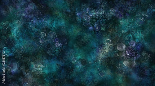 © possawat, Fototapeta premium Abstract Floral Pattern in Deep Blue and Green Tones for Design