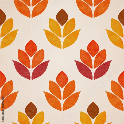 Fototapeta premium Abstract floral pattern with a retro, autumnal color palette.