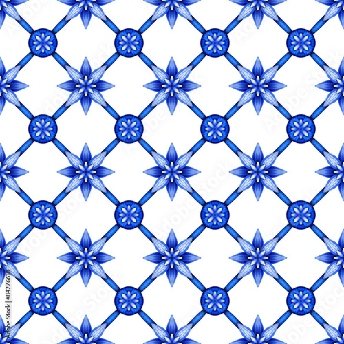 Fototapeta premium abstract floral seamless pattern, blue white gzhel trellis, lattice ornament