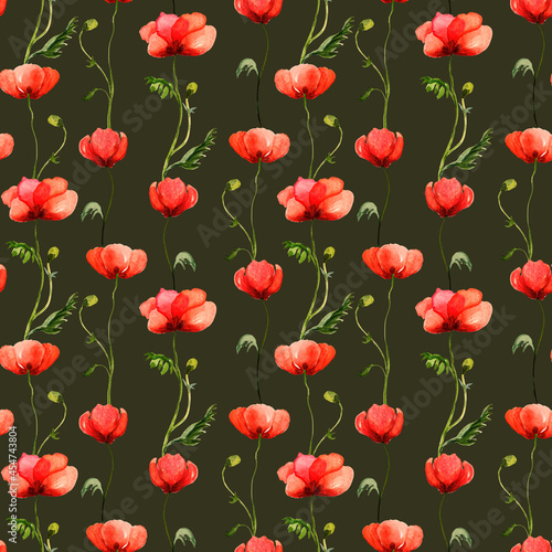 Fototapeta premium Abstract floral seamless pattern painted by brush field poppies. Superior...
