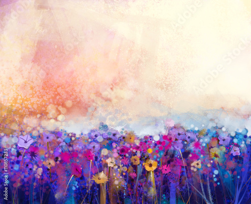 © nongkran_ch, Fototapeta premium Abstract floral watercolor painting. Hand painted Yellow and Red flowers in soft color on light yellow background. Abstract flower paintings in the meadows. Spring flower seasonal nature background