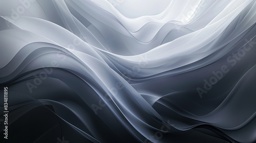 Obraz premium Abstract flow of smooth, layered waves in monochrome tones. Ideal for...