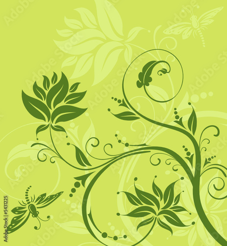 © TAlex, Fototapeta premium Abstract flower background with dragonfly, vector illustration