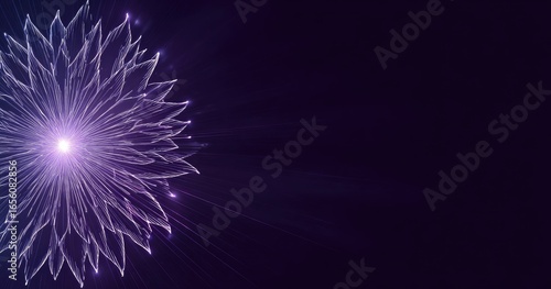 Fototapeta premium Abstract flower design in light purple lines, radiating from a central point on a dark background