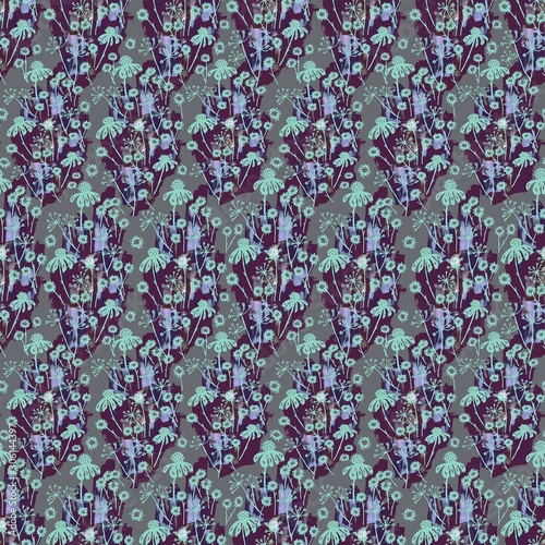 © Nina Maria, Obraz premium Abstract flowers and leaves repeat seamless pattern. Watercolor and digital hand drawn pattern. mixed technique for textile design and design