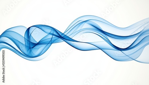 © Ilja, Naklejka premium Abstract Flowing Blue Smoke on White Background, Smooth Undulating Curves, Translucent Effect