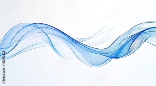 © lumpia, Obraz premium Abstract flowing blue waves on white background (4)