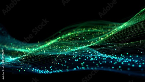 Obraz premium Abstract flowing digital data streams with glowing particles and light trails...