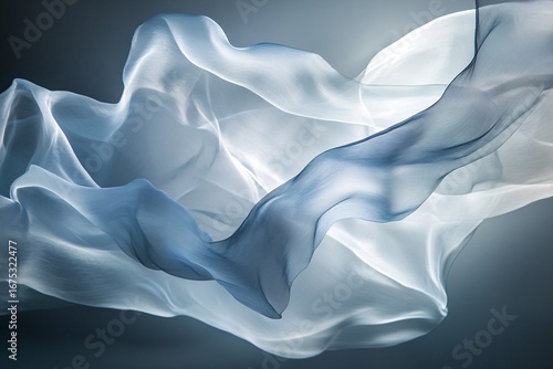 © Koplexs-Stock, Fototapeta premium Abstract flowing fabric in shades of white and blue against a dark background.