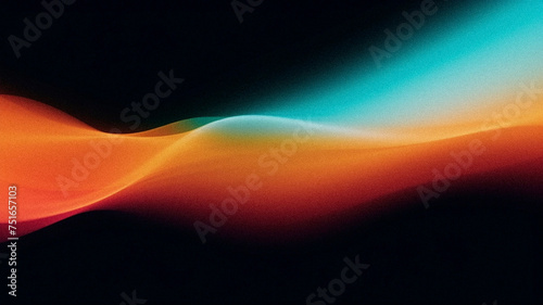 © Grafx Studios, Obraz premium Abstract flowing light pattern, Red Cyan Yellow Orange on dark background, Wallpaper, desktop background, Poster