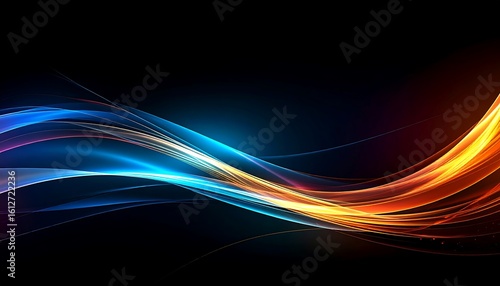 Naklejka premium Abstract flowing light streaks, cool blue and warm orange hues on black