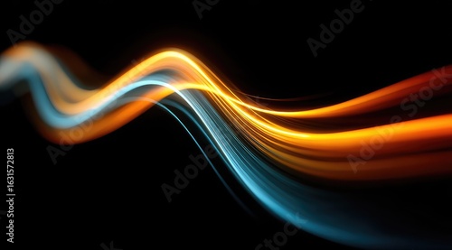Obraz premium Abstract flowing light trails, orange and blue hues on black background