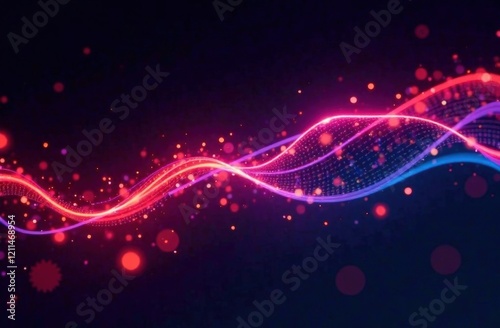 © Вера Щербакова, Obraz premium Abstract flowing neon wave purple background