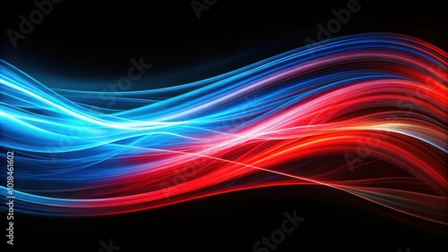 © Vibrant Visions Pixe, Naklejka premium Abstract Flowing Red and Blue Light Streaks on a Black Background