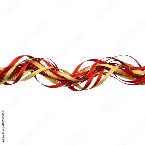 Fototapeta premium Abstract flowing red and gold ribbons twisted together isolated on transparent background