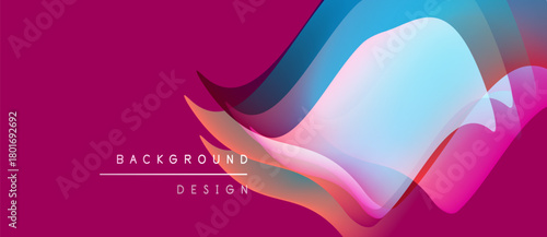 Fototapeta premium Abstract flowing shapes, vibrant colors, pink background. Modern design elements create dynamic visual impact. Smooth gradients present fluid motion.