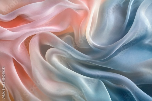 © Rozifa, Obraz premium Abstract flowing silk fabric with pastel peach, pink, and blue colors