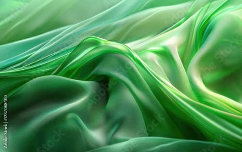 © Svitlana, Obraz premium Abstract flowing silk ribbons in multiple green shades for Saint Patricks Day