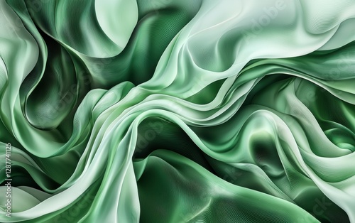 © Антон Федченко, Obraz premium Abstract flowing silk ribbons in multiple green shades for Saint Patricks Day