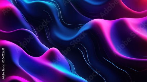 © Arthinart, Fototapeta premium Abstract flowing smooth gradient background of blue and pink curved shapes with glowing lines
