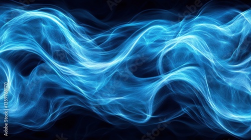 © Chanwit, Obraz premium Abstract Flowing Translucent Blue Smoke or Energy Waves on a Black Background Creating a Dynamic and Visually Striking Aesthetic for Any Design Project