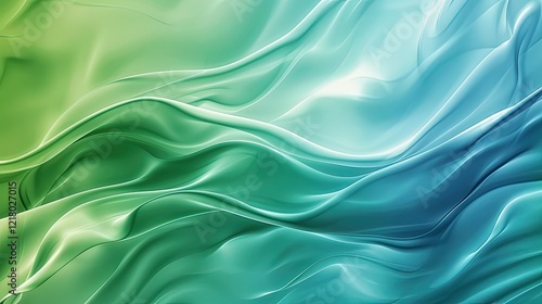 Obraz premium Abstract flowing waves in green and blue hues creating a smooth, tranquil...