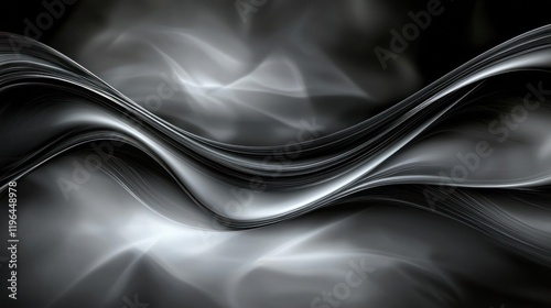 Obraz premium Abstract flowing waves in shades of black and silver.