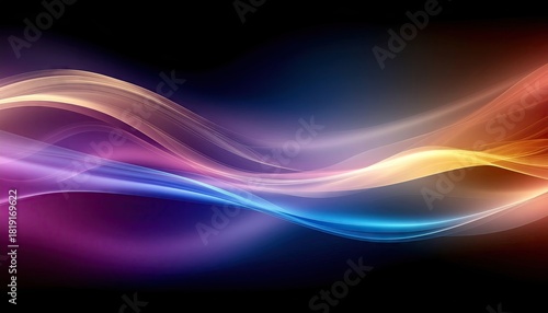 Fototapeta premium Abstract flowing waves of light particles in vibrant blue purple and orange hues against a dark background